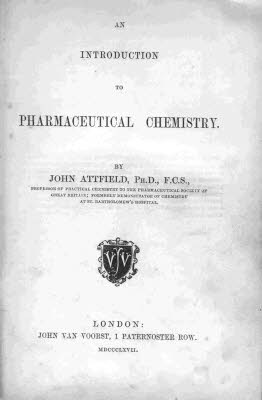 The title page of a standard textbook by Prof John Attfield (1835-1911), the editor of the British Pharmacopaeia.