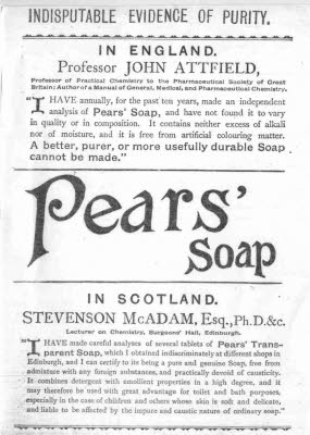 Professor John Attfield (1835-1911) was probably best known to the general public for his Pears' Soap endorsements, as shown here.